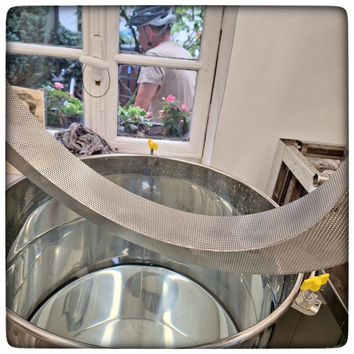 Wasser einlaufen lassen und auch die Kleinigkeit mit dem Läuterring nicht vergessen. Ist nämlich erst einmal eingemaischt, dann ist das ein rechtes Gefummel.
