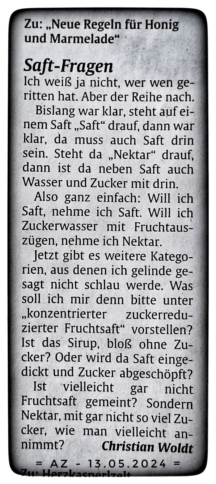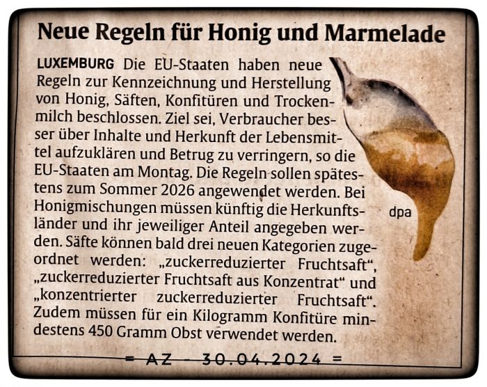 [Update II]: Gedanken zu Honig und Marmelade in der AZ vom 13.05.2024