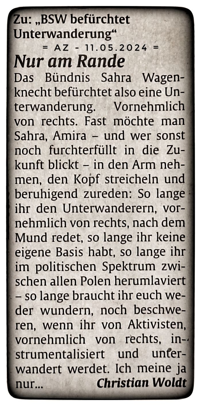 [Update I]: Gedanken zu Sahra Wagenkechts BSW in der AZ vom 11.05.2024