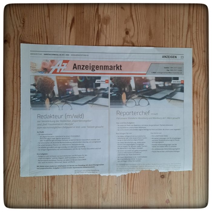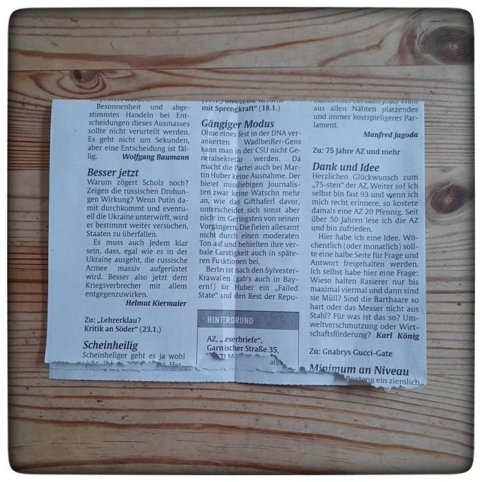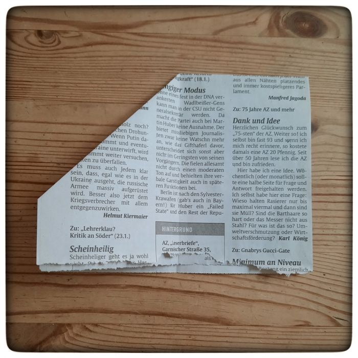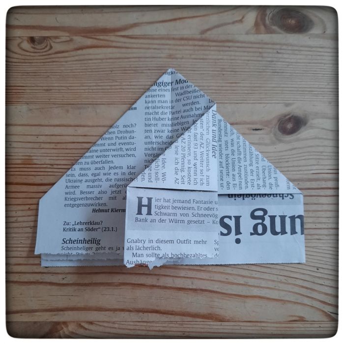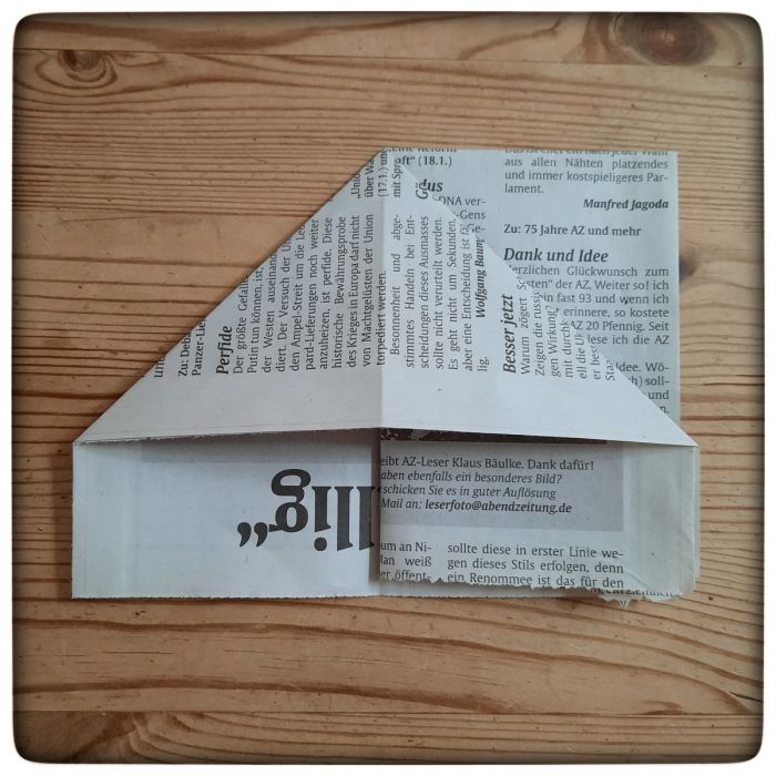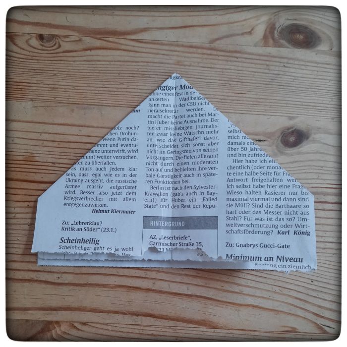 Ich habe eine Seite der Abendzeitung her genommen. Ich bin mir aber sicher, dass das mit der Süddeutschen genau so funktioniert. Mit der Bild eher nicht. Pflanzen mögen ja nun auch nicht im Dreck aufwachsen.