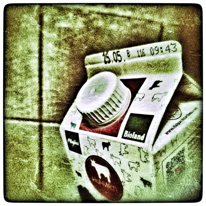 Meine erste, bewusste Begegnung mit Milch im Kühlschrank wird wohl in Form einer dem Tetrapack nicht unähnlichen Verbundstoffverpackung gewesen sein. Diese Verpackung zeichnete sich dadurch aus, dass sie rundrum aus ein und dem selben Verbundstoff bestand. Schlimm genug.