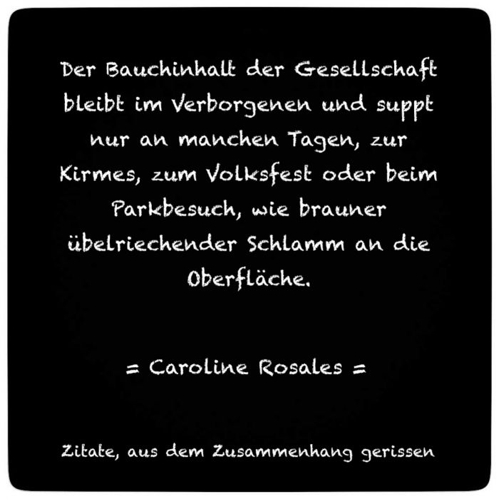 Der Bauchinhalt der Gesellschaft bleibt im Verborgenen und suppt nur an manchen Tagen, zur Kirmes, zum Volksfest oder beim Parkbesuch, wie brauner übelriechender Schlamm an die Oberfläche.