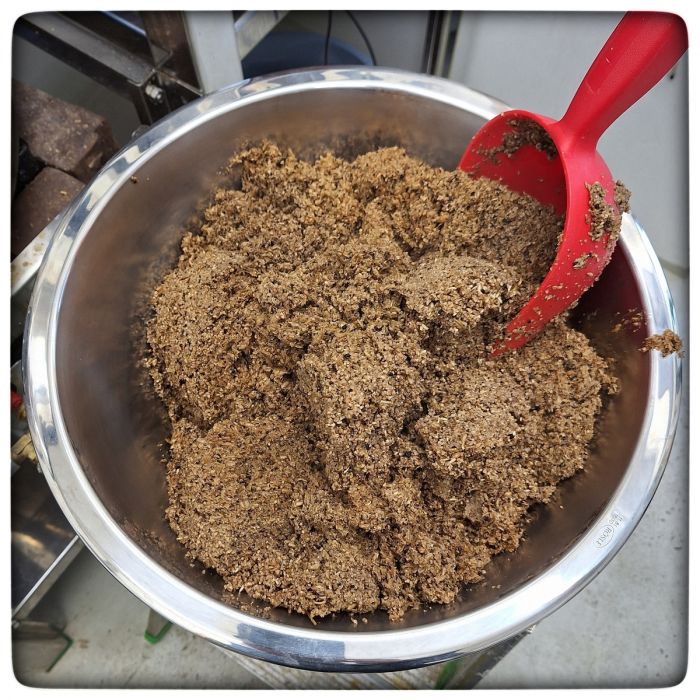 Am Anfang ist es Malz. Dann Schrot. Dann Maische und schließlich Treber. Wie sich das Malz durch den Treberkuchen selbst aus der Würze filtert, das hatten wir schon. Und auch, dass uns noch nichts eingefallen ist, was wir mit dem Treber anfangen können. Bis dahin kommt der Treber in den Bio-Müll.