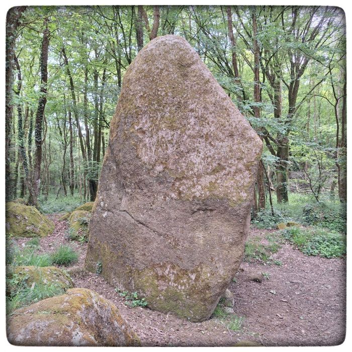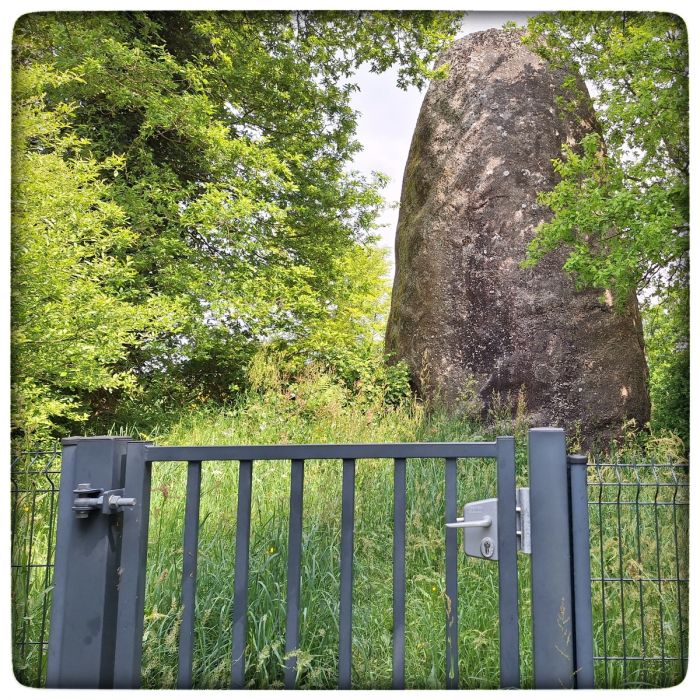 Wobei der Guihalon Hinkelstein versteckt im Wald steht und sich dort frei bewegen kann. Der Stein bei Glomel steht nahe an der Straße, daher besteht jederzeit die Gefahr, dass er in einem unbedachten Moment die Fahrbahn kreuzt und sich und Autofahrer in Gefahr bringt. Deshalb ist er in ein Gehege gesperrt. Ob das artgerechte Haltung ist, vermag ich nicht zu sagen.
