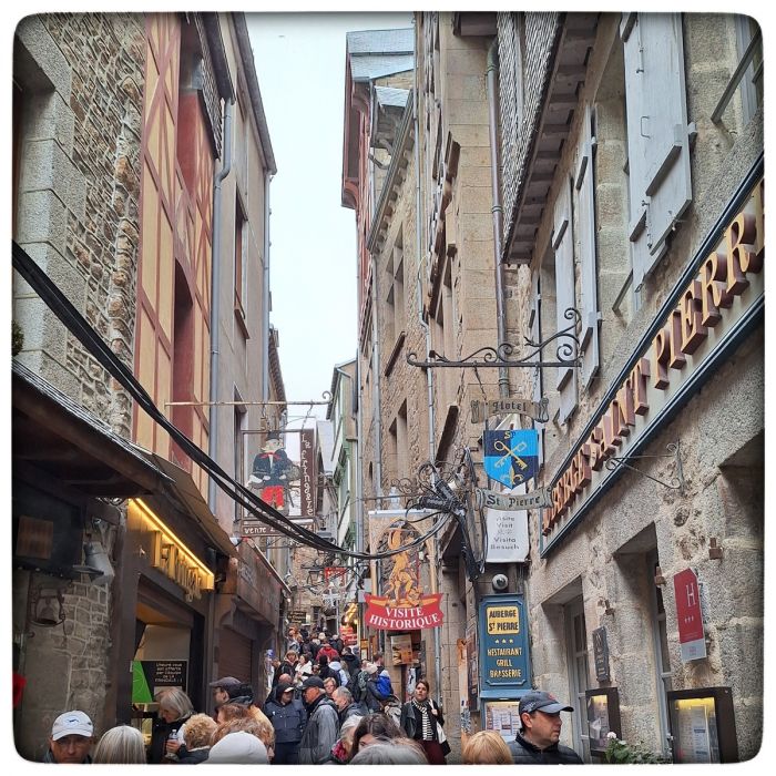 Also da ragt ein Felsen aus dem Wattenmeer mit einem Kloster drauf und einem kleinen Dorf drum rum. In dem Dorf leben um die 20 Menschen. Ein vielfaches davon arbeitet dort und Touristen schieben sich zu tausenden durch die schmalen Gässchen. Ich würde gerne nicht dort leben müssen. Auch nicht arbeiten. Schlimm genug, dass ich mich mit den anderen Touristen zusammen dort getummelt habe. Aber ich kann euch sagen, das Tummeln hat sich gelohnt. Die Gässchen, Treppchen, Terrassen, verwinkelt und verwunschenen Orte sind einen Besuch wert.
