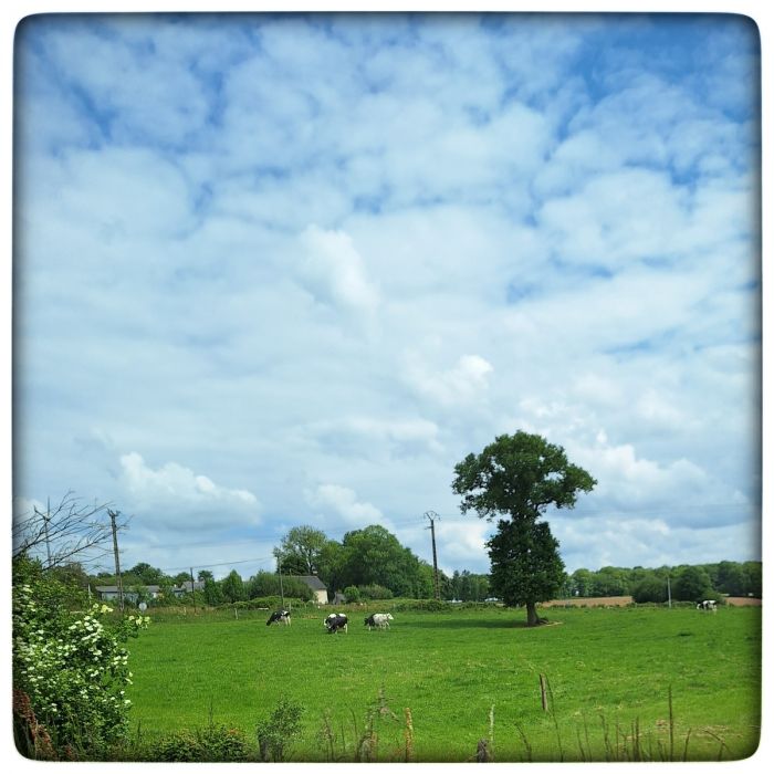Das könnte jetzt irgendwo in Oberbayern sein. Ist es aber nicht. Es ist Loiron-Ruillé. Woher ich das weiß? Ganz einfach, ich bin gerade daran vorbei gefahren. Und weil ich gerade auf dem Weg in die Bretagne bin, ist das eben nicht Oberbayern.