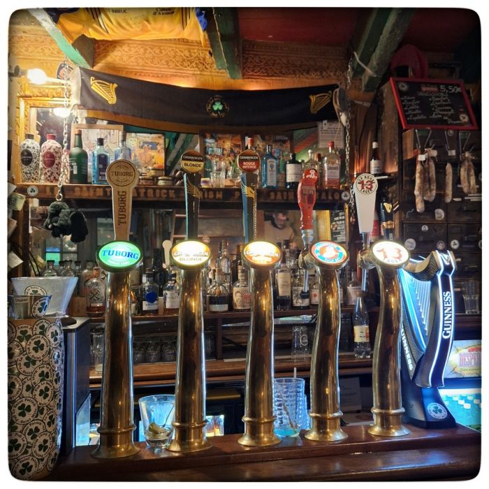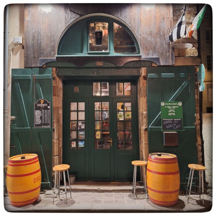 Was vermutet man in einer Altstadt an der bretonischen Küste am allerwenigsten? Kängurus, ok, die vermutet man da wirklich nicht. Was man da aber auch nicht vermutet, das ist ein Irish Pub. Also so einen wo nicht nur draußen "Irish Pub" drauf steht und drinnen gibt es halt Guinnes, sondern so einen, der auch innen komplett Irish Pub ist. Wie in Irland eingepackt und vor Ort wieder aufgestellt. Das vermutet man nicht... und doch steht man plötzlich davor. Und dann mitten drin. Und staunt. Und trinkt ein Guinnes. Mit Shamrock auf dem Schaum.