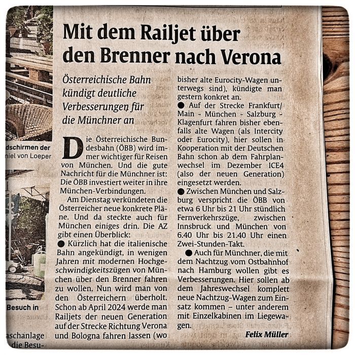 Da verwundert es nicht, wenn die ÖBB demnächst auch Verbindungen von München nach Italien anbietet.