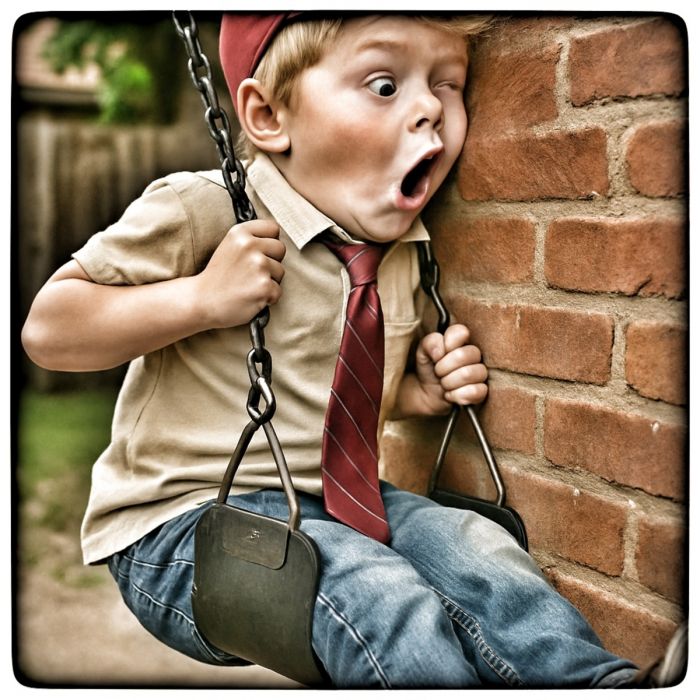 Ich möchte eröffnen mit einem kurzen Kommentar zum Titelbild: Es ist gar nicht so selten, dass Schaukeln zu nahe an der Wand stehen.
