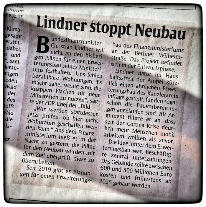 Wenn ich lese, das Finanzministerium hat einen Erweiterungsbau für 600 bis 800 Millionen Euro geplant. Das Kanzleramt ebenfalls. Dann stellt sich doch die Frage, sind es tatsächlich die Parlamentarier, die hohe Kosten verursachen? Oder ist es nicht vielmehr der Rattenschwanz, den der Parlamentarismus mit sich bringt. Personal, Berater, Sachverständige? Büros, Dienstreisen, Fuhrpark?