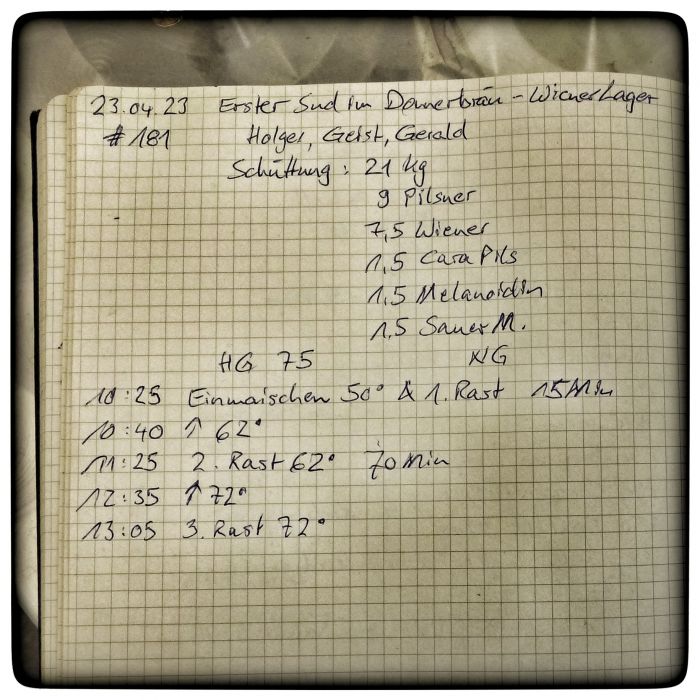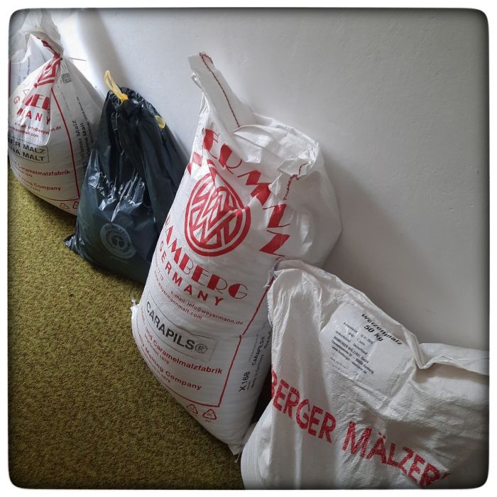 Das Malzlager gibt her, was das Rezept verlangt. Liegt daran, dass rechtzeitig eingelagert wurde, was das Rezept verlangt. Schliesslich fiel der Brautag auf einen Sonntag und da lässt sich nicht mal eben ein Sack Caramalz vom Rewe im Hauptbahnhof holen. Der Rewe führt so was nämlich nicht.