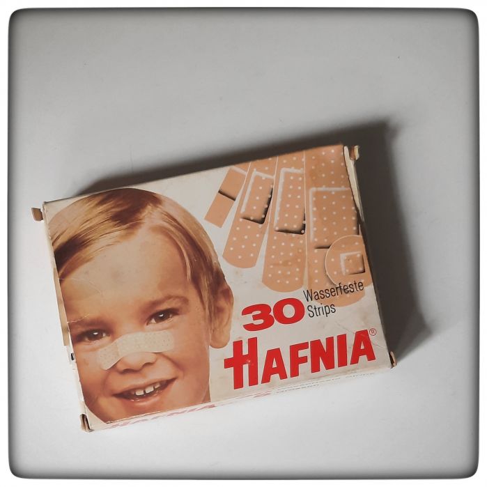 Zum Beispiel dem Arbeitsschutz. Oder der Ersten Hilfe. Sollte man in einer Brauerei nicht zu kurz kommen lassen. Wir haben an alles gedacht. Zum Beispiel an Wasserfeste Strips von Hafnia. Keiner weiß zu sagen, bis wann es eine Firma Hafnia gegeben hat, die wasserfeste Strips hergestellt hat. Google zumindest kennt sie nicht. Egal, wir haben Pflaster.