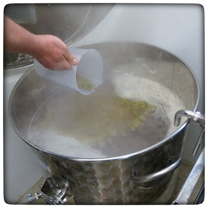 Zurück zum Brauen. Zur Würze kommt jetzt der Hopfen. Dann muss das ganze kochen. Wenn ich das richtig verstanden habe, dann darum, um das Aroma aus dem Hopfen raus zu bekommen und eventuelle Keime zu töten.