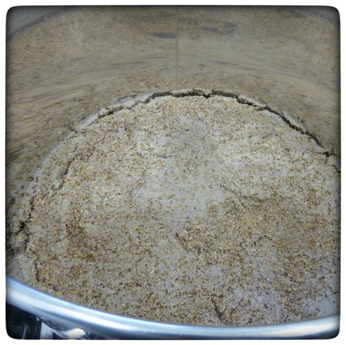 Aber alles hat ein Ende. So auch das Rasten der Maische. Und nach dem Rasten kommt das Läutern. Ihr kennt das ja, mit finsteren Gedanken geht man rein, mit klaren Gedanken kommt man raus. Ist also geläutert. So ähnlich ist das mit dem Bier auch. Aus der trüben Maischesupp soll klare Würze werden. Da hat sich die Maische was ganz besonderes einfallen lassen, sie filtert sich sozusagen selbst raus. Während die Vorwürze aus dem Maischetopf in den Kochtopf fließt, verdichtet sich das Malz im Maischetopf so, dass es selbst nicht mit in den Kochtopf fliesst. Ganz so, als wüsste das Malz, dass seine Aufgabe jetzt erledigt ist und sich selbst einen würdevollen Abgang verschafft.