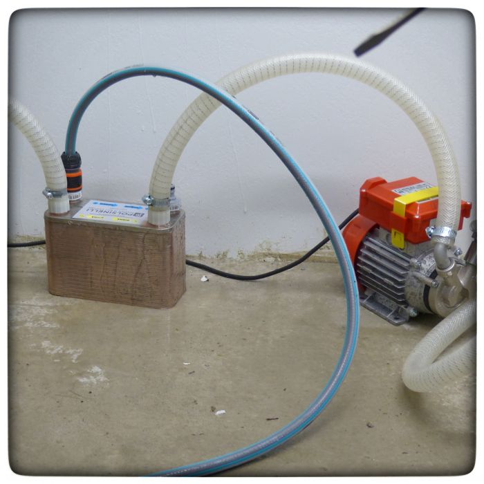 So pumpen wir die Würze denn im Kreis und siehe da, bei jedem Durchlauf nimmt die Temperatur spürbar ab. Es funktioniert.