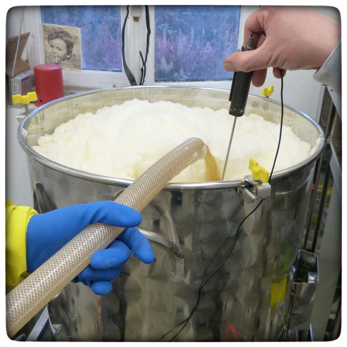 Beim Pumpen und Kühlen entsteht ein fester Schaum. Nicht so wie später auf dem Bier, mehr wie Eischnee. Fest und haltbar.