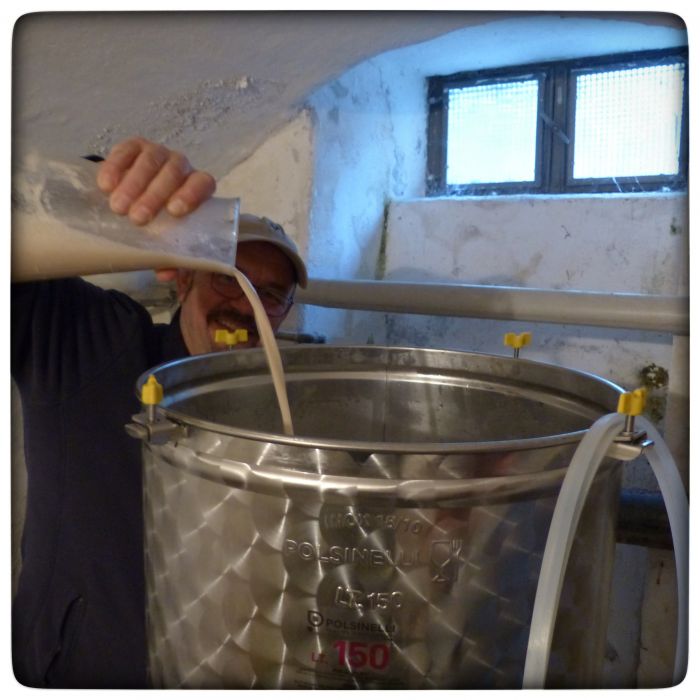 Jetzt aber der letzte Schritt. Die Hefe kommt zur Würze. Dann wird das Gärfass verschlossen und das zukünftige Bier darf erst einmal zehn Tage vor sich hin gären.