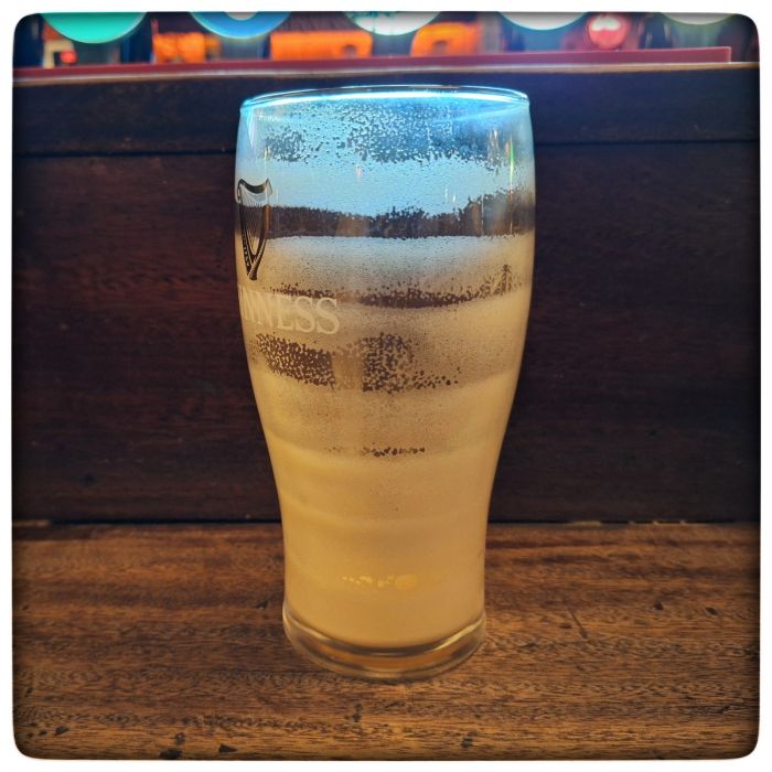 Ist euch schon mal aufgefallen, dass der Schaum im Guinnessglas nach jedem Schluck einen Ring hinterlässt? Ich zum Beispiel brauche acht Schluck für ein Pint.