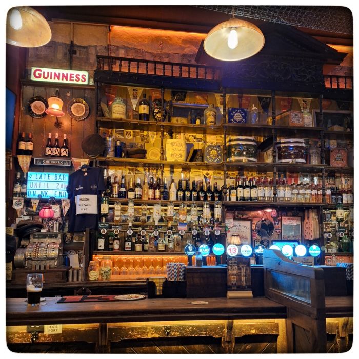 Irische Pubs haben oft mehrere Bereiche. Einen zum Essen. Einen zum Saufen. Einen für die Spielautomaten. Einen für die Familienfeste. Und einen... für den Alleinunterhalter. Wenn der Alleinunterhalter aber so laut ist, dass er alle Bereich gleichzeitig und gleichmässig beschallt, dann bleibt nur mehr die Flucht. Und die werden wir nun antreten.