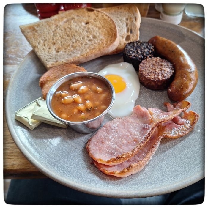 Beginnen möchte ich mit dem Frühstück. Da habe ich mich ganz besonders drauf gefreut. Das ist nichts für Veganer und auch nichts für Kalorienbewusste.