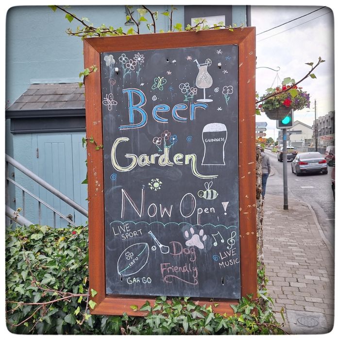 Wenn in Irland von Beergarden die Rede ist, dann hat das natürlich nicht viel mit einen von Kastanien beschatteten Biergarten in Bayern zu tun. In diesem Fall war der Beergarden ein Bierzelt mit Hurling Live Übertragung. Keine Masskrüge und natürlich auch kein Helles. Dafür Guinness in Pints. Geht auch ganz gut.