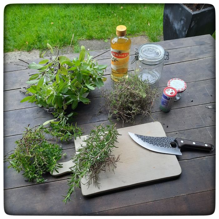 Kräuter sind tolle Dinger. Sie duften, sie schmecken. Sie passen zu Salat, Gemüse, Fleisch und Fisch. Sie lassen sich frisch verwenden, trocknen oder in Öl einlegen. Man kann auch die ihnen inne seienden ätherischen Öle extrahieren. Aber das mache ich nicht.