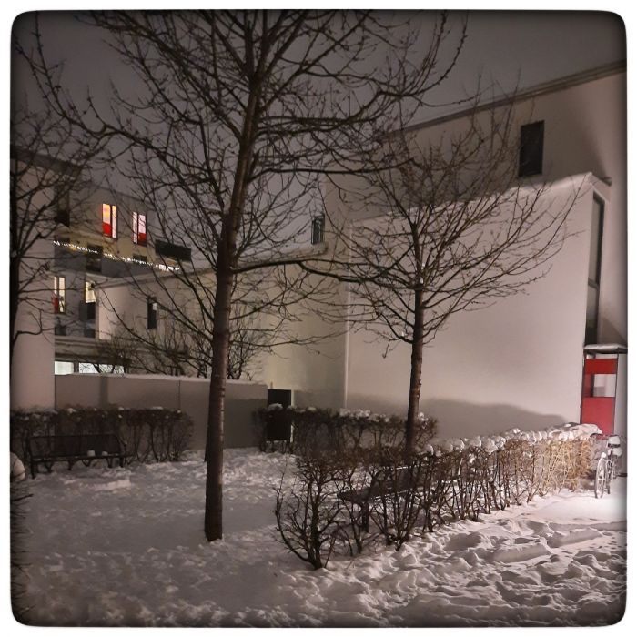 An einem schönen Winterabend machte ich mich denn auf zu einer kurzen Exkursion. München, Ackermannbogen. Ich könnte mich jetzt auslassen über fehlende Einkaufsmöglichkeiten, dass das Quartier nur eine einzige Zu- und auch wieder Ausfahrt hat. Über nicht vorhandene Gastronomie und was man sonst noch gerne in einem lebenswerten Umfeld gerne hätte.