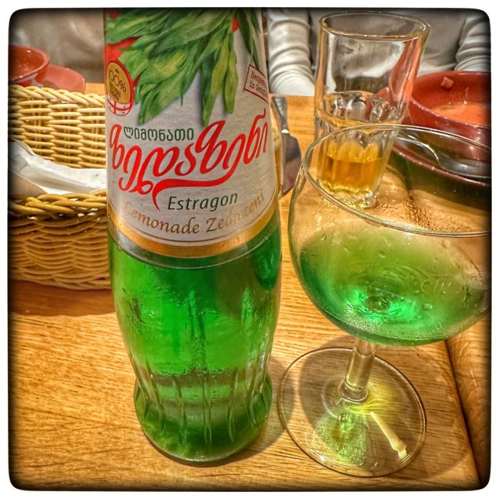 Ich sehe fragende Gesichter all um mich herum. Und auch ich hatte dieses fragende Gesicht, als ich auf der Speisekarte Tarchuna(1) entdeckte. Weiter war da zu lesen, es handele sich um Estragon Limonade. Meine Russischen Begleiter bekamen hingegen verklärte Gesichter und schwärmten vom Geschmack ihrer Kindheit.