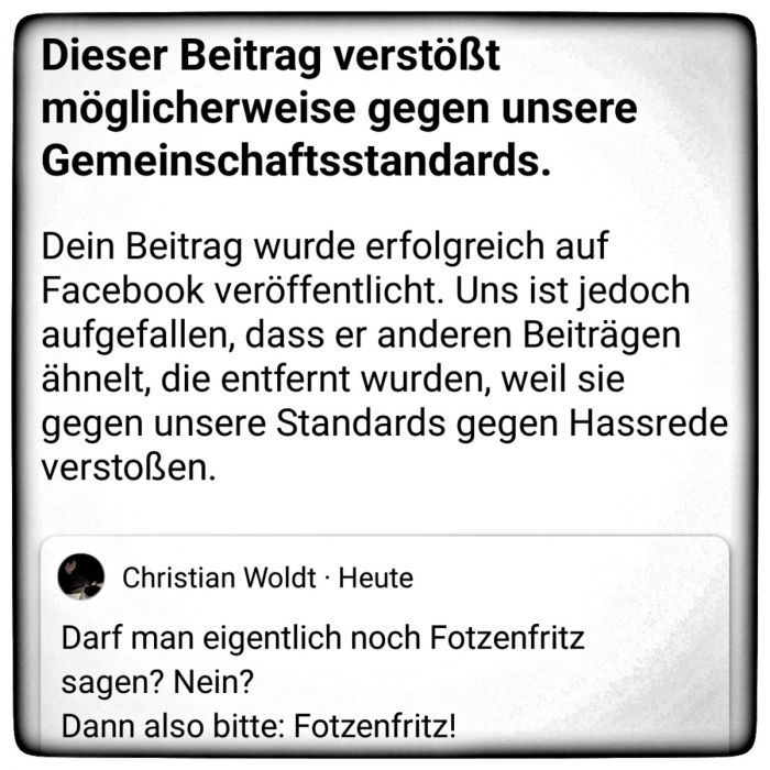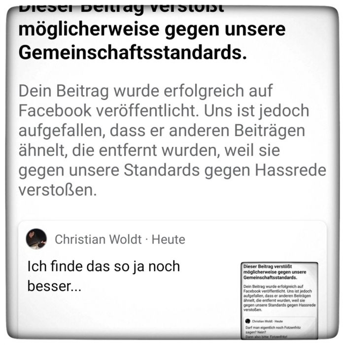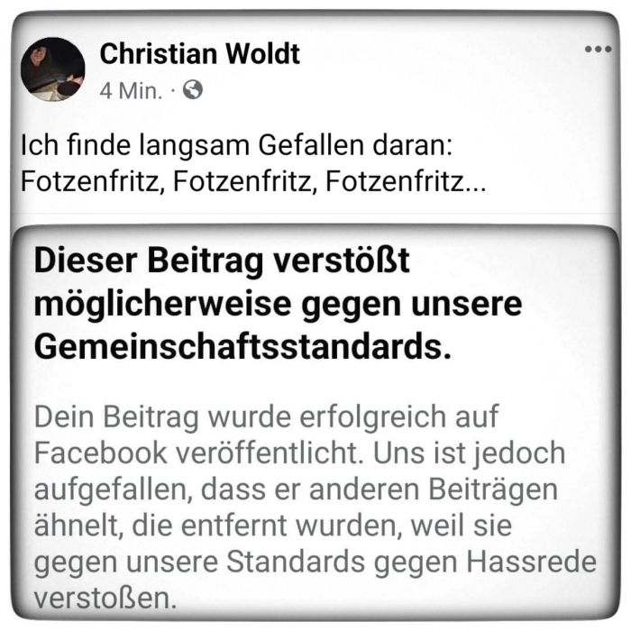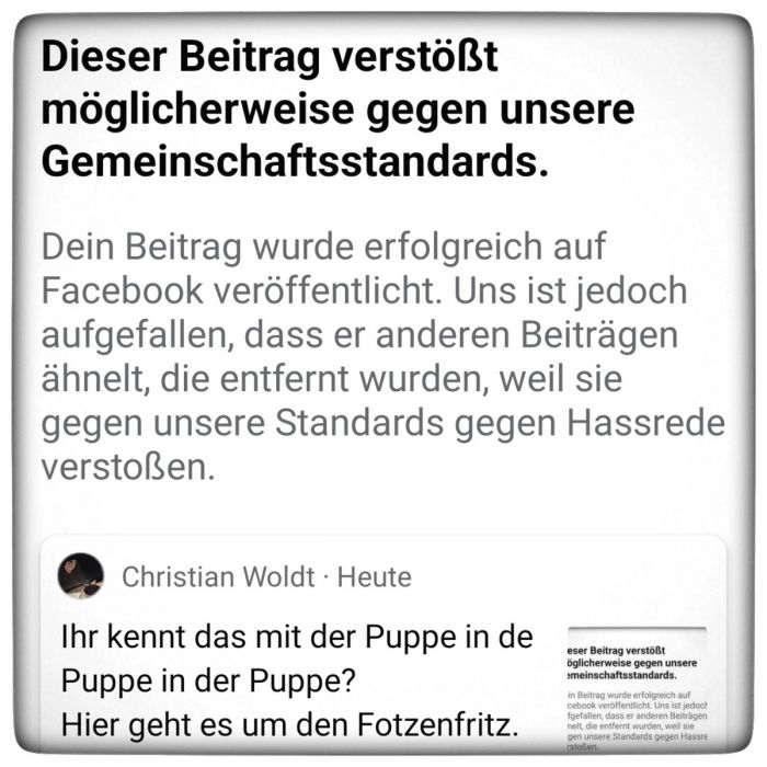 Dann habe ich es aber gelassen, nachdem mir Facebook versprochen hat, wenn ich das noch einmal mache, würde mein Account gesperrt.