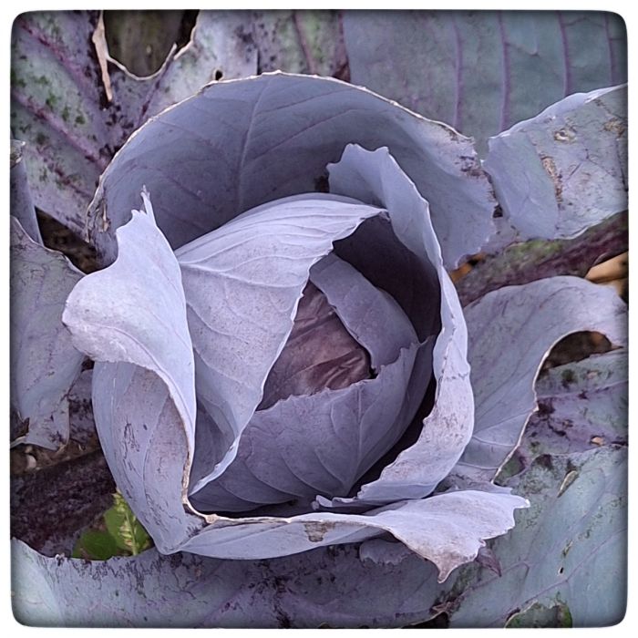 Und bei uns kommt traditionell eine Gans in den Ofen. Und zu einer Gans gehören Knödel und Blaukraut. Entsprechend bauen wir jedes Jahr Blaukraut an und hoffen, dass die Schnecken genug übrig lassen, dass es für die ganze Familie reicht.