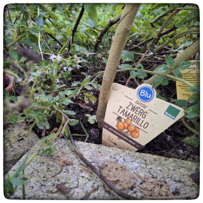 Wenn man in weiser Voraussicht das Wapperl zur Pflanze gepflanzt hat, dann weiß man, jessas, das ist eine Zwergtamarillo.
