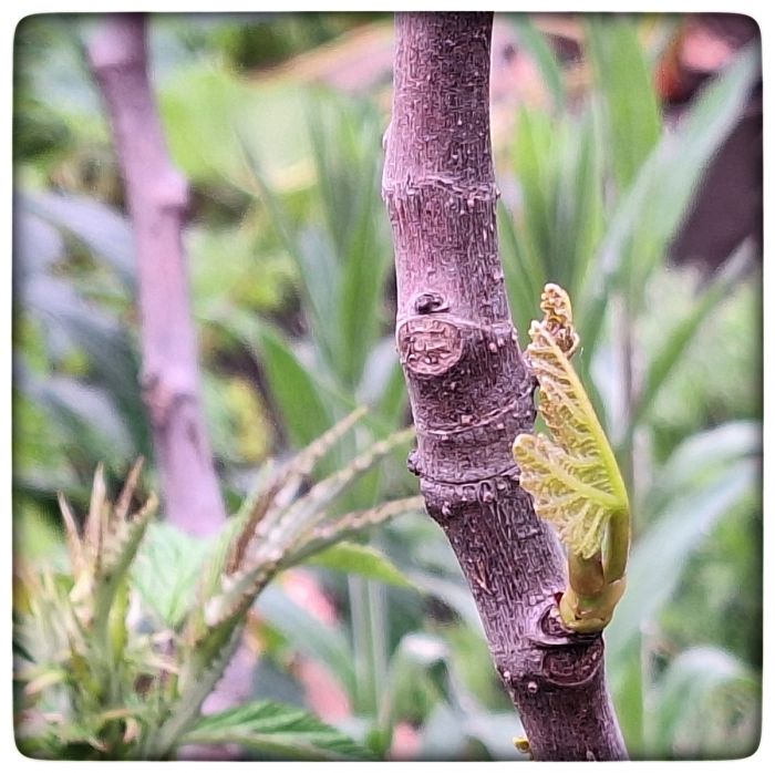 Der Feigenbaum ist in unseren Breiten Fremd. Stellt man sie sich dennoch in den Garten, dann fremdeln sie. Und weil das so ist, haben wir nicht nur eine Feige, nein, wir haben zwei. Wir schaffen sie im Winter ins Gewächshaus und im Frühling wieder raus. Sollen sich eingewöhnen. Entsprechend groß ist die Freude, wenn sich erste Blätter zeigen.
