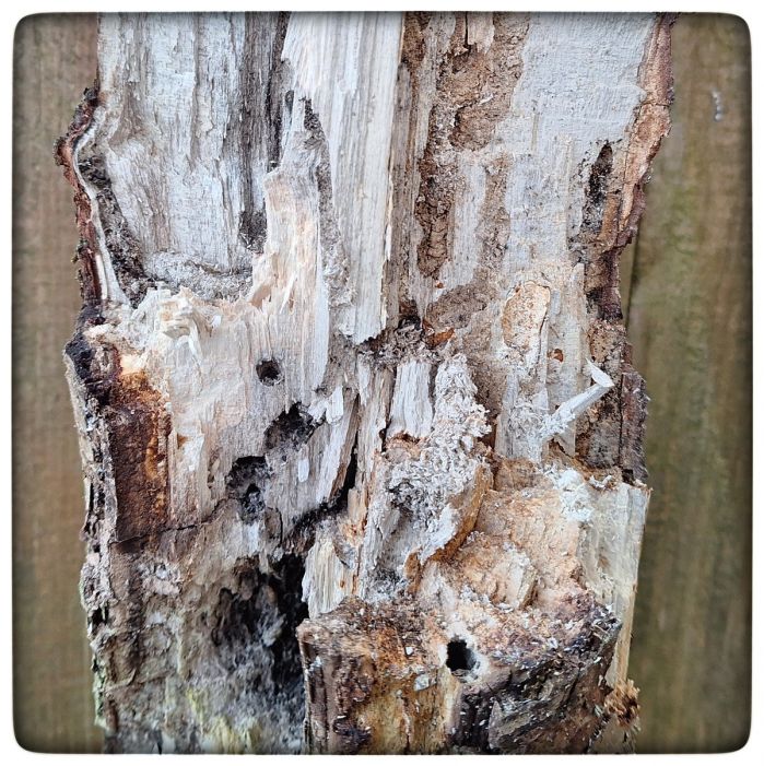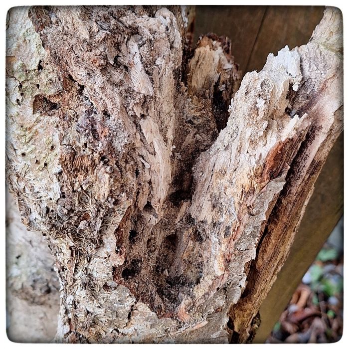 So ein Baum wird ja alt. Vielleicht sogar sehr alt. Aber er ist nicht unsterblich. Wenn so ein Baum gestorben ist, dann... lebt er weiter. Also nicht selbst. Dann bietet er Lebensraum für allerlei Gewürm und Getier. Und dieses Getier macht das Holz mürbe. Bröselig geradezu. Und dann muss der Baum weg. Bevor er jemandem auf den Kopf fällt.