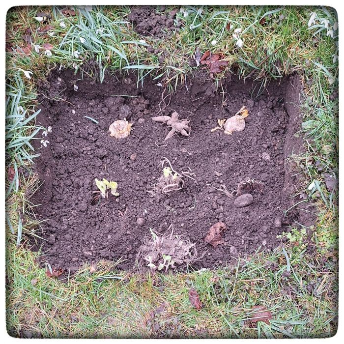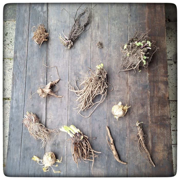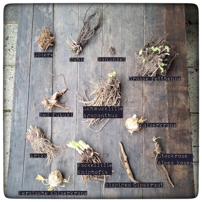 Brave Konsumenten, die wir sind, haben wir im Wurzelbereich zugeschlagen. Eine dicke, schwere Tüte mit gemischten Wurzeldingen haben wir heim und in den Garten geschleppt.