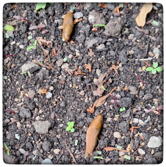 Und auch heute schicken sich die Schleimer an, zur Tat zu schreiten. Die erste Angriffswelle konnte ich abwehren. Die zweite auch. Über den Berg sind die jungen Pflanzen noch lange nicht.