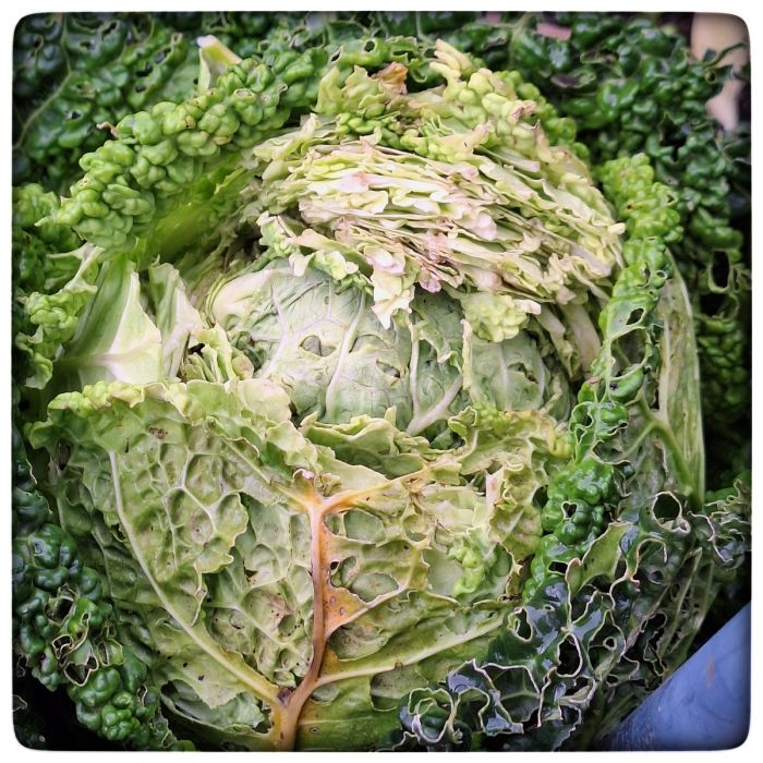 Hier ein eindrucksvolles Beispiel. Einen Tag zuvor war das noch ein praller, runder Kopf. Das fällt also unter die Kategorie "dieses Gemüse wirst du nicht essen".