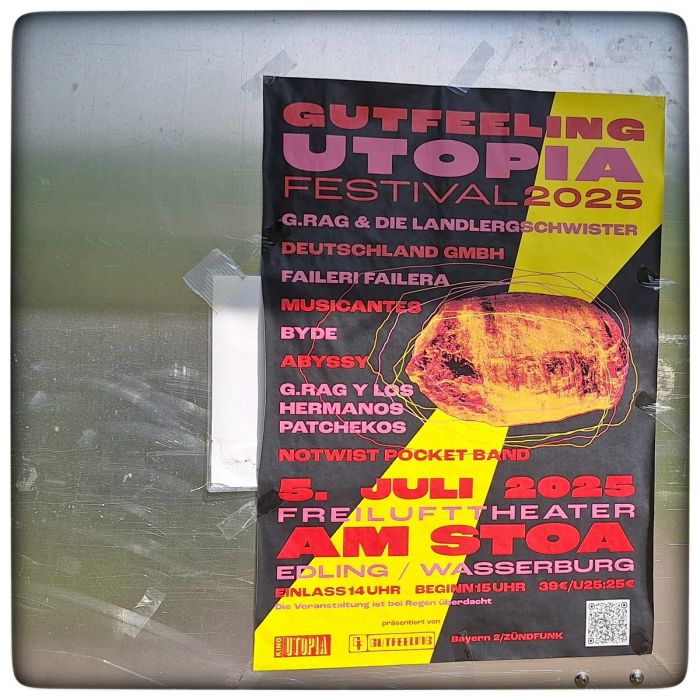 Ich habe auch so eine Band. Byde nennen sie sich und die sehe ich mir hin und wieder gerne an. Es gab eine Zeit, da habe ich so eine Band einfach eingeladen. In die Glocke oder das A5 oder die Kulturstation. So einfach ist das heute nicht mehr. Heute muss ich schon da hin, wo die Band spielt. Und jetzt hat sie in Edling bei Wasserburg am Stoa(1) gespielt. Auf dem Gutfeeling Festival. Also bin ich hin zum Stoa.