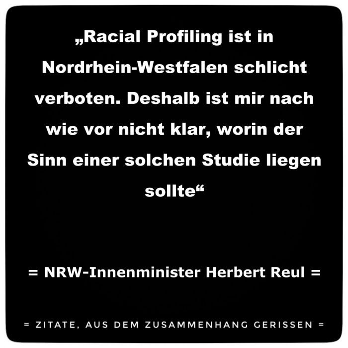 Eine interessante Auffassung legt Herr Reul da an den Tag. Weil "Racial Profiling" verboten ist, ist es unnötig, herauszufinden, ob und in welchem Mass das bei unserer Polizei vielleicht doch passiert.