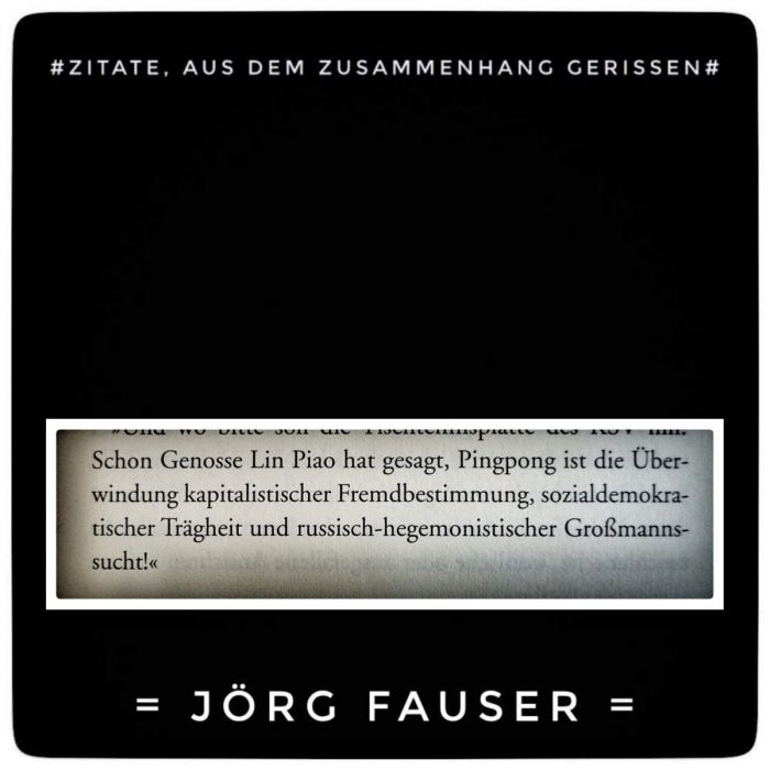 Schon Genosse Lin Piao hat gesagt, Pingpong ist die Überwindung kapitalistischer Fremdbestimmung, sozialdemokratischer Trägheit und russisch-hegemonistischer Großmannssucht!