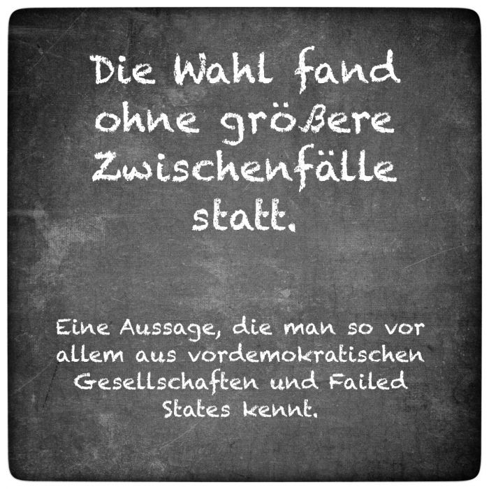 Eine Aussage, man so vor allem aus vordemokratischen Gesellschaften und Failed States kennt.