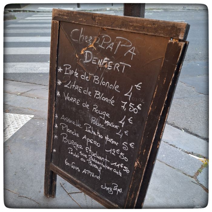 An anderer Stelle wurden mir gleich zwei Vorurteile auf einmal gezogen. Dass Maßkrugstemmen nur in Bayern Usus ist. Und dass Bier unerschwinglich ist bei Chez Papa gibt es die Mass für schlappe 7,50. Und ich habe viele Humpen auf den Tischen gesehen.
