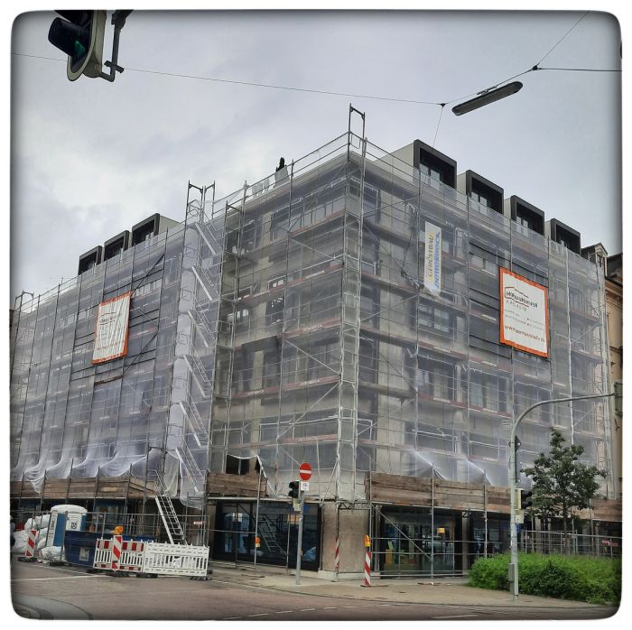 Es ist schon ein paar Tage her, als ich gefragt habe, was wohl passieren wird, wenn dieses verpuppte Haus seinen Kokon verlassen wird. Ob sich denn hinter dieser Plane wohlmöglich ein Schmetterling verbergen könnte.
