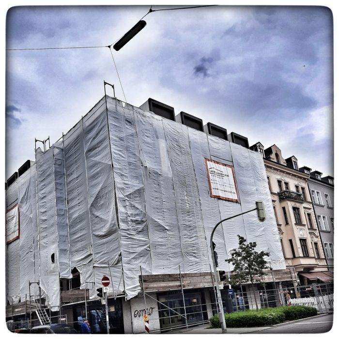 Nun, einen Schmetterling kann ich bisher nicht erkennen. Das wirkt langsam mehr wie eine Kunstinstallation. Vielleicht mit gesellschaftskritischem Unterton. Gemahnend der Vergänglichkeit von Beton. Oder als Fanal gegen die Hässlichkeit moderner Architektur. Ich finde, dieses Ruinenambiente mitten im noblen Schwabing, entwickelt so seinen ganz eigenen Charme.