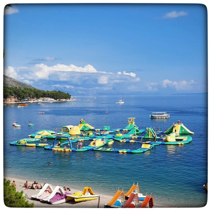 Ein klein wenig ins Grübeln hat mich dieser Traum jung gebliebener Kinderherzen aber doch gebracht. Es reicht also heute nicht mehr aus, sich an den Strand zu legen, die Sonne auf den Bauch brutzeln zu lassen und ab und an Abkühlung im Meer zu suchen. Da muss unbedingt noch irgendwie Eventcharakter mit hinzu. Eine Riesenhüpfburg oder Jetski. Sich vom Motorboot auf einer überdimensionalen Luftmatratze übers Wasser oder am Fallschirm durch die Lüfte ziehen lassen. Und an das Tretboot muss noch eine Rutsche dran.
