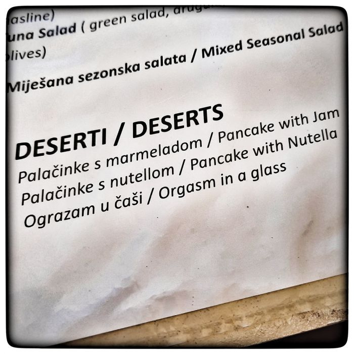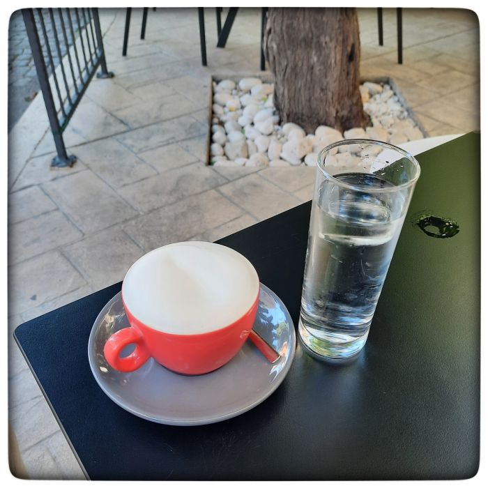 Kroatien ist nicht das Land des ausgedehnten Frühstücks, was ich sehr schade finde. Denn was gibt es schöneres, als sich in einem fremden Land vormittags an einem belebten Platz in ein Café zu setzen und bei Kaffee und einem Süßteilchen dem Treiben zuzusehen. Im Café gibt es keine Süßteilchen. Teilchen gibt es beim Bäcker. Da gibt es aber keinen Kaffee. Beides zusammen? Nicht in Kroatien.