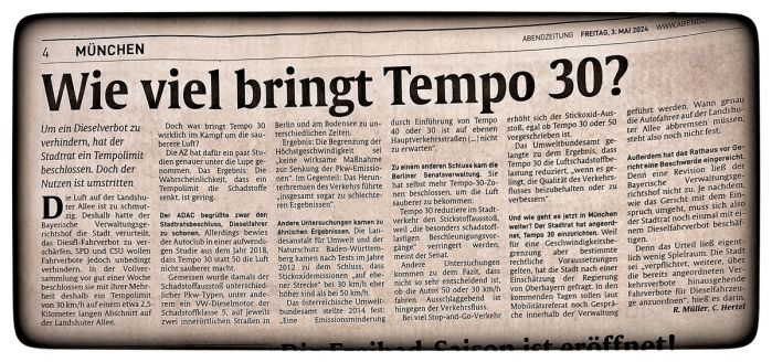 [abendzeitung-muenchen.de]: Wie viel bringt Tempo 30?