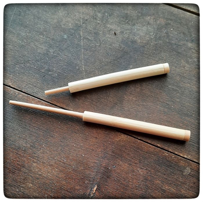 Eine pfiffige Idee: Teleskopessstäbchen. Zum Essen eher ungeeignet. Das mag aber vor allem daran liegen, dass meine Pratzen für solch filigranes Werkzeug nicht geschaffen sind.