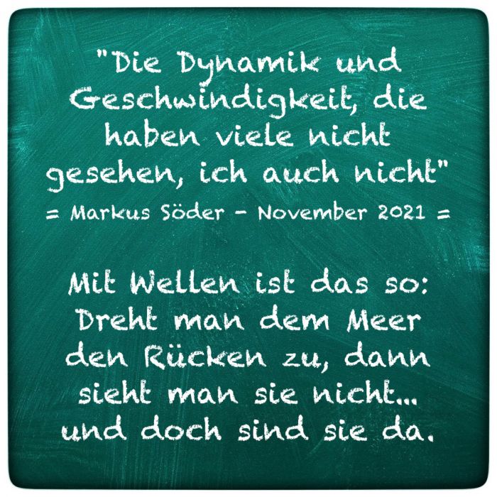 "Naja - mal Hand aufs Herz: Wer von euch/uns hat ernsthaft damit gerechnet, dass die Pandemie in so kurzer Zeit so heftig an Fahrt aufnimmt. Ich nicht. Dass da nochmal was kommt, war mir klar. Dass die vierte Welle alles Bisherige in den Schatten stellt, nicht. Und sie hat gerade erst angefangen."