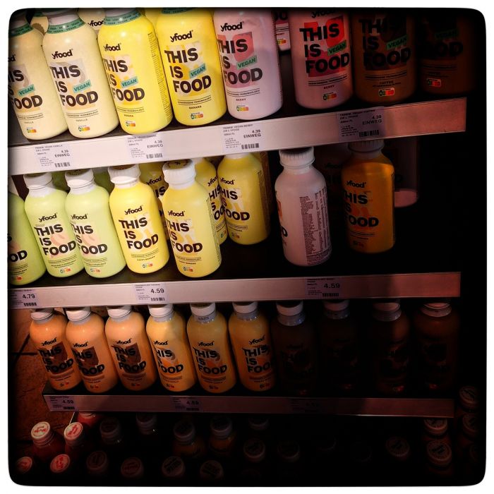 Die Krönung der Perversion ist jedoch Y-Food. Eine Nahrungspampe in der Plastikflasche. Die so jede Nähe zu Kulinarik und Geselligkeit vermissen lässt. Die Werbung dazu suggeriert, dass Nahrung zubereiten und zu genießen ein lästiges Überbleibsel aus der Zeit der Neandertaler sei. Mit dem Erwerb einer Flasche Y-Food lässt sich die Nahrungsaufnahme samt Drumherum auf ein Minimum reduzieren. Zum Scheißen tut's es.