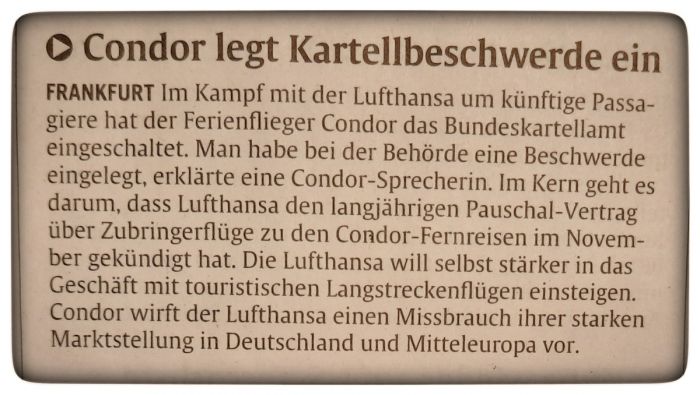Condor gegen Lufthansa: Das hat etwas von Denver-Clan (die Älteren werden sich noch erinnern), von Familienfehde, von Pack schlägt sich, Pack verträgt sich.